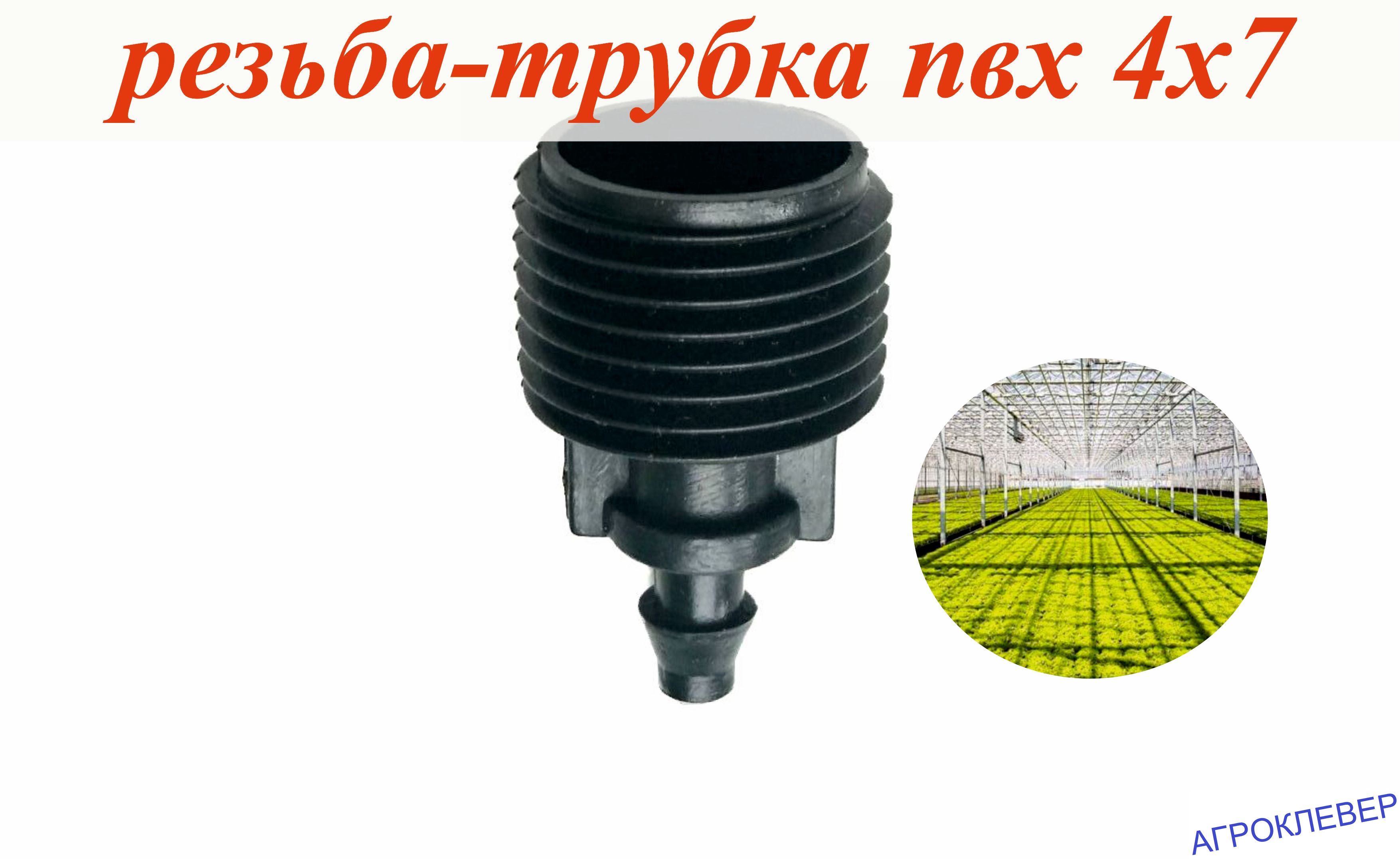 Переходник на трубку ПВХ 4х7мм с резьбового соединения 1/2". Имеет наружную резьбу 1/2 с выходом на штуцер для микротрубки 4х7мм