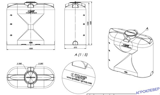 Артикул 10040003, 10040008 Объем, л 1000 Вес, кг 44 Длина, мм 1500 Ширина, мм 670 Высота, мм 1300 Диаметр горловины, мм 300 Материал Полиэтилен Температура эксплуатации, °C -30°C до +60°C Цвет Синий, Черный, Зеленый -