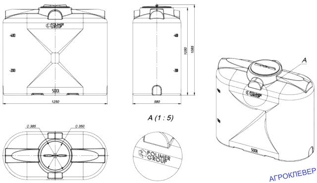 Емкость S 500 – это прямоугольный пластиковый бак объемом 500 литров, предназначенный для хранения питьевой воды, технических жидкостей.
