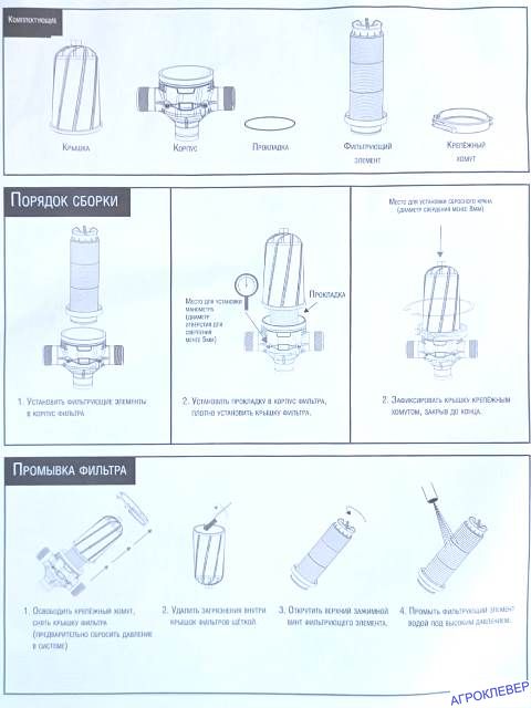 Разборный корпус позволит быстро и легко промывать дисковый фильтр для полива. Рекомендуется применять при внесении растворимых удобрений с поливом.