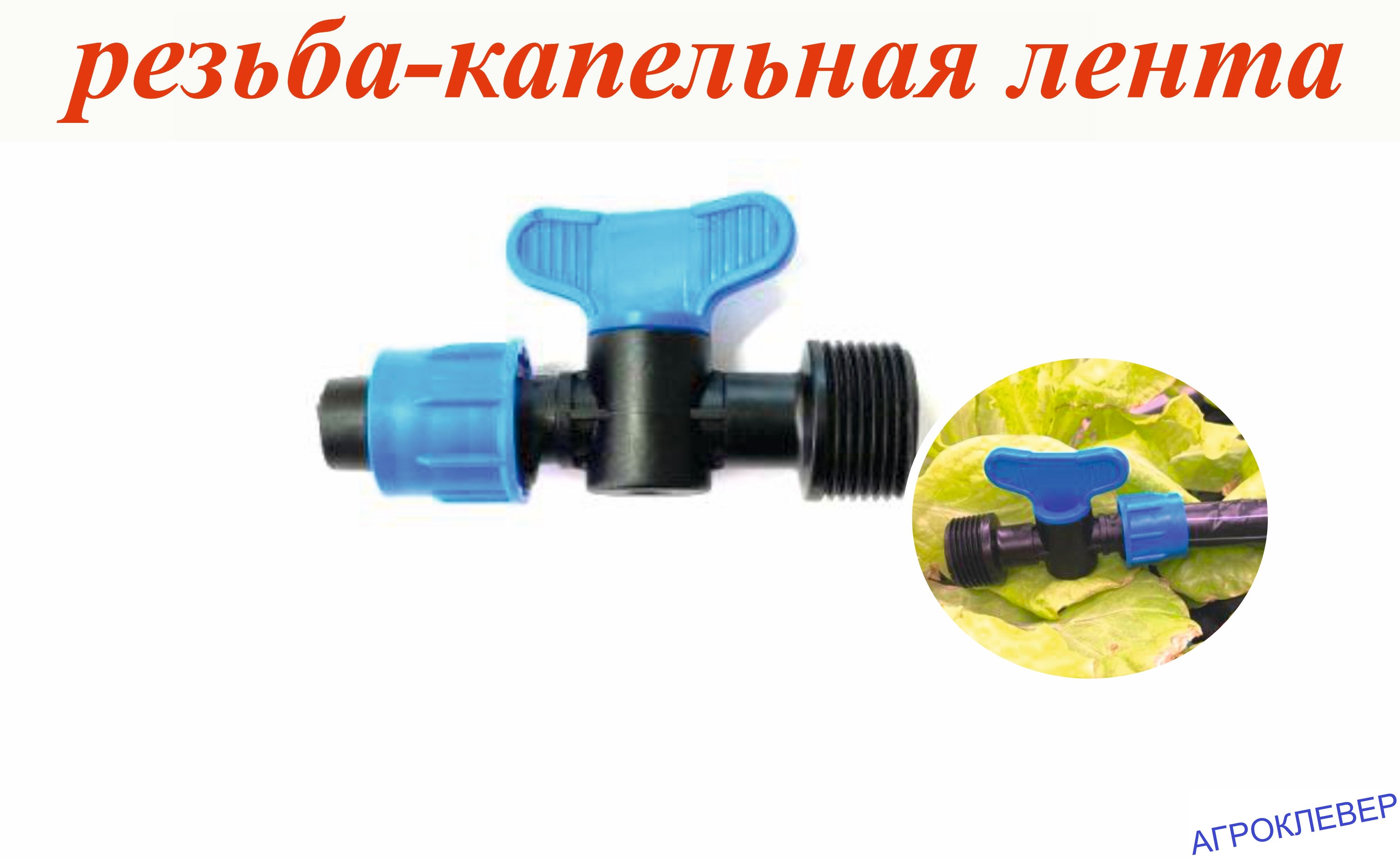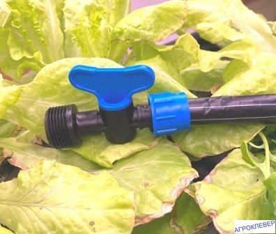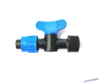 Кран 3/4" наружная резьба для капельной ленты диаметром 16 мм - используется для подключения и регулирования подачи воды в системе капельного полива.