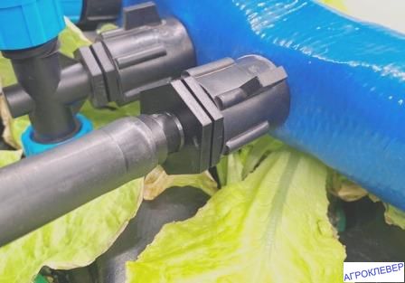 С одной стороны штуцерное соединение типа елочка, применяется для соединения капельных и слепых трубок, с другой фитинг врезной.