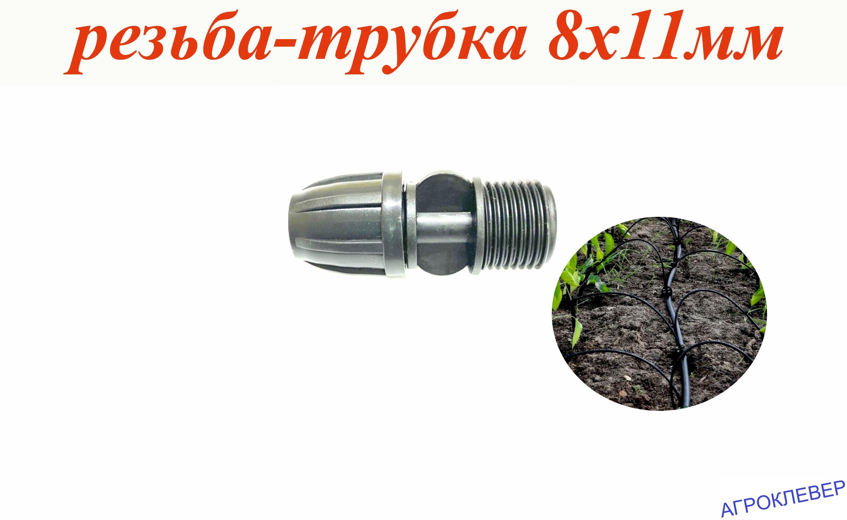 Стартовый фитинг с зажимной гайкой для магистрали 8х11мм c наружной резьбой 1/2" для капельного полива