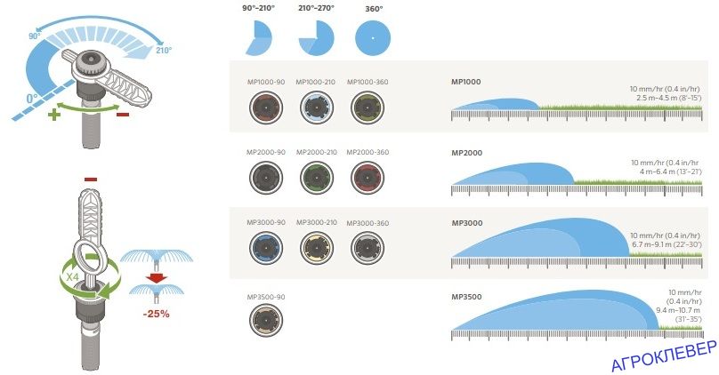 - Легкая регулировка сектора полива