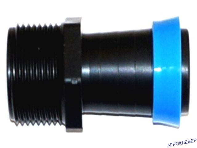 Предназначен для подключения разбрызгивающего шланга D 40мм к системе водоснабжения при помощи резьбового соединения 1 ". Разбрызгивающий шланг прижимается к фитингу фиксирующим кольцом