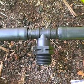 Тройник 16х1/2"НРх16 - фитинг полива для трубки 16мм, позволяющий развести поток из точки разбора с 1/2 внутренней резьбой на 2 направления. Для облегчения монтажа рекомендуется трубку немного подогреть феном.