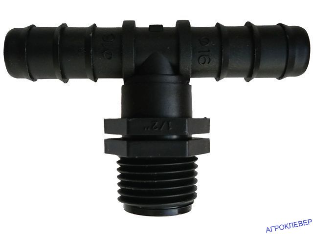 Тройник 16мм с переходом на 1/2" наружную резьбу