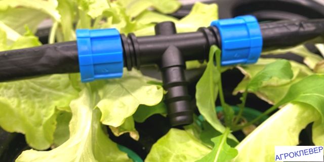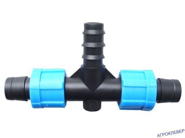 Тройник применяется для соединения капельной ленты и шланга 3/4" (либо трубки диаметром 20мм)