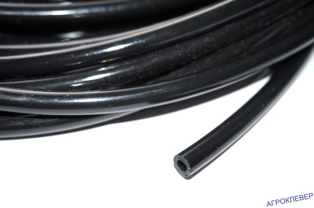 Трубка ПВХ 4х7 очень эластичная, стойкая к ультрафиолетовому излучению, легко режется и монтируется, обеспечивает подвод воды к капельницам и форсункам капельного полива.