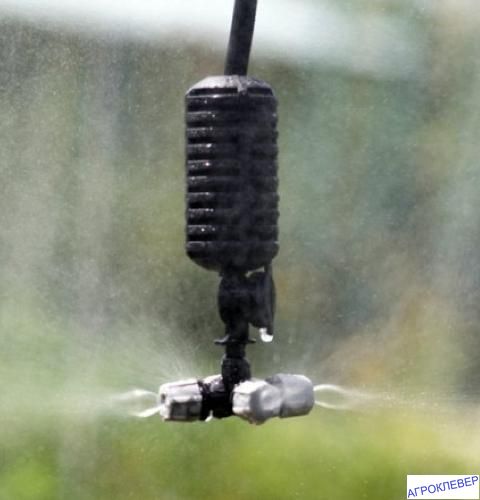 Туманообразователь - фоггер обеспечивает повышение влажности и понижение температуры воздуха, что актуально для любой теплицы. Производительность и мелкодисперсность у мини спринклеров и форсунок туманообразования зависят от давления воды в системе.