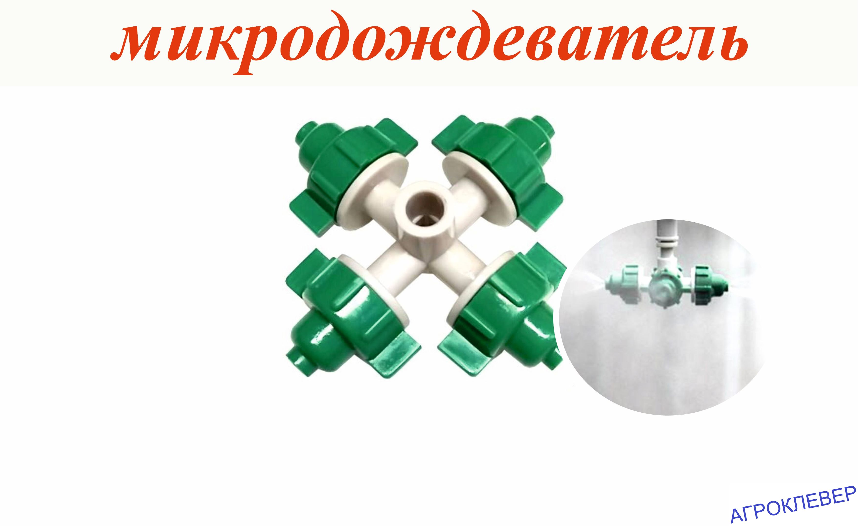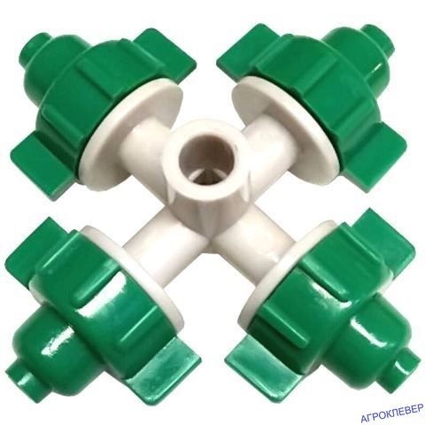 Микродождеватель микроспринклер на 4 выхода применяется для мелкодисперсионного орошения, для поддержания микроклимата в тепличных хозяйствах, на аграрных фермах и т.д. Фоггеры могут использоваться как для бережного орошения выращиваемых культур, так и для охлаждения воздуха в тепличных хозяйствах и поддержания необходимого уровня влажности. Пластиковый фоггер относится к распылителям низкого давления, способен работать при давлении от 2,5 до 4 бар.