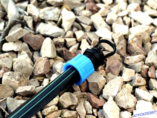 Фитинг с поджимом надёжно удерживает капельную ленту.